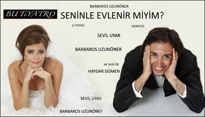 Bu Tiyatro tarafından 18 ve 25 Aralık tarihlerinde Taksim Haymatlos Sahnesi'nde gerçekleşecek 'Seninle Evlenir Miyim?' oyununun biletleri 25 TL yerine %50 grupfoni fırsatı ile sadece 12,50 TL!