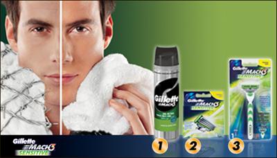 Mach 3 Sensitive: Sıradan kullan-at tıraş bıçaklarına göre daha az tahriş ve yanma hissi ile tıraş olmayı sağlayan özel tıraş sistemi.