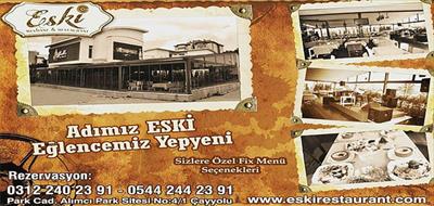 Pazar hariç her gün yapılan canlı müziklerle şık yemeklerin adresi olmaya devam eden Eski Meyhane & Restaurant, eğlenceli ve farklı bir akşam geçirmek isteyenleri bir araya getiriyor. Güler yüzlü personelleri ve başarılı sunumları ile Başkentlilerin gözde mekanı unvanıyla unutulmaz yemekleri ile keyifli akşamlar sunuyor.