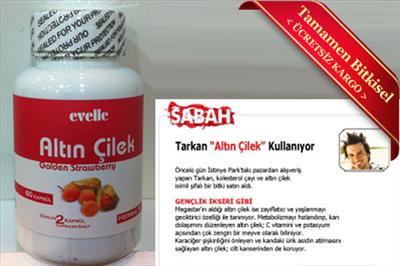 Artık Zayıflama kâbusunuz olmayacak! Sağlığınızı ve paranızı kaybetmeden hızlıca kilo vermek istiyor musunuz? İçeriğinde en yüksek oranda altın çilek özütü barındıran Evelle - ALTIN ÇİLEK kapsülleri şimdi sizlerin kullanımı için hazırlandı. Başbakan Recep Tayyip Erdoğan'ın dahi sofrasından hiç eksik etmediği, Altın Çilek zayıflama Hapına(tamamen bitkiseldir) 59 TL yerine TrendFırsat.com farkıyla sadece 29 TL'ye sahip olabilirsiniz. Tüm Türkiye'ye ÜCRETSİZ kargo ile gönderim yapılacaktır.