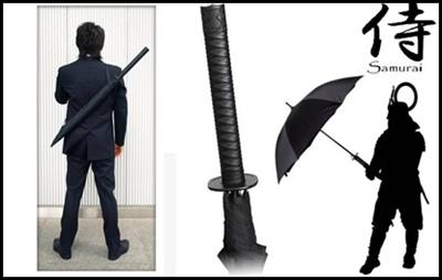 Yağmurlu bir günde kendinizi farklı kılmak istiyorsanız, bu ürün tam size göre! Samuray kılıcı görünümlü sapıyla bu şemsiye gerçekten bir tasarımcının aklına gelebilecek en değişik fikirlerden. Elinizdeyken her ne kadar gerçek bir samuray kılıcı gibi gözükse de, siz gene de onun bir şemsiye olduğunu unutmayın.